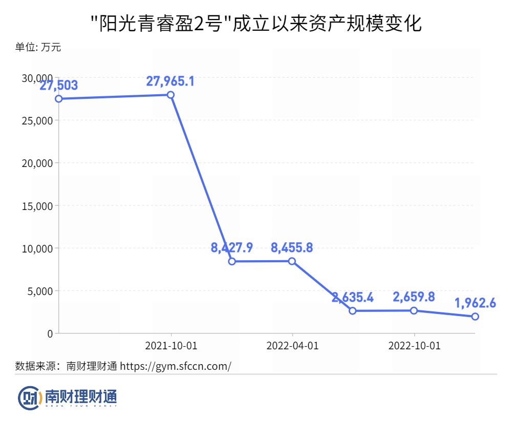 据2022年度投资报告显示,截至2022年末产品资产规模仅为1962.6万元,较初始募集规模猛降92.86%,满足产品说明书中的提前终止条件。