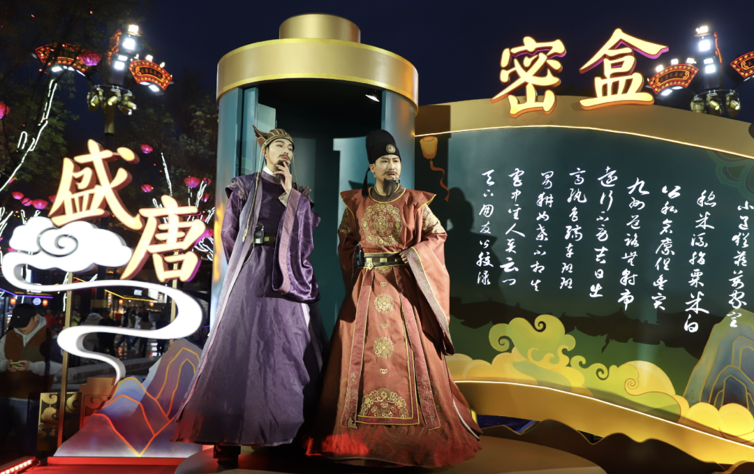 在用线上内容为线下引流方面,最近上线的“盛唐密盒”更体现出西安结合本地文化优势打造热点的突出能力。“盛唐密盒”的主要表演形式,是由两位扮演“房玄龄”和“杜如晦”的工作人员出题,并随机挑选游客上台参与答题。虽然采用的是益智问答这种并不新颖的节目模式,但是角色扮演和脱口秀的表现形式为表演本身增加了更多趣味性和互动性。