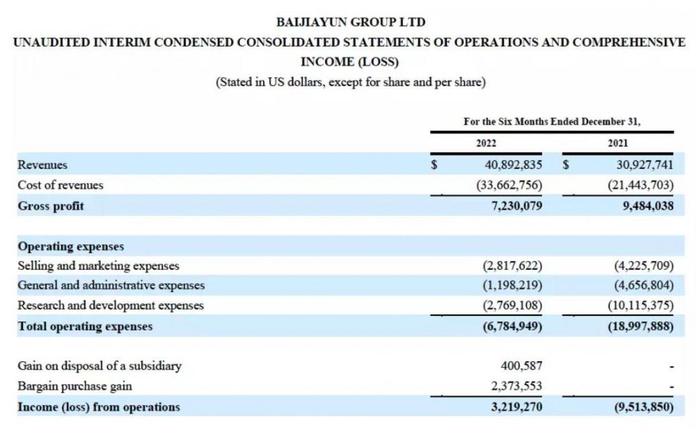 21世纪经济报道记者 王峰 北京报道 4月19日,国内音视频SaaS公司百家云(NASDAQ:RTC)公布了截至2022年12月31日的2023财年上半年未经审计的财务业绩报告。