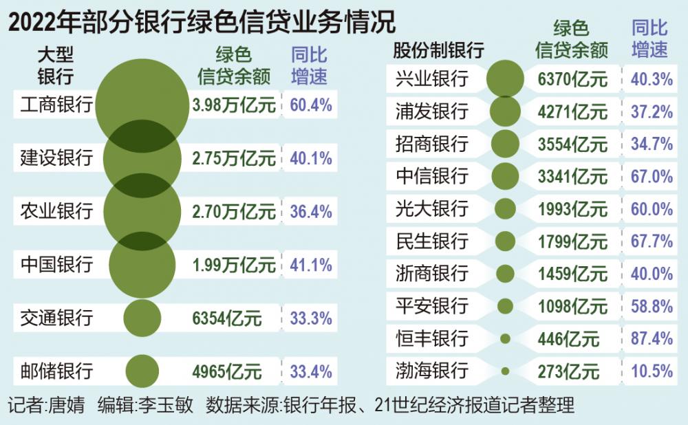 数据显示,截至2022年底,国有六大行的绿色贷款余额合计达12.55万亿元,占据绿色贷款余额总规模的半壁江山。