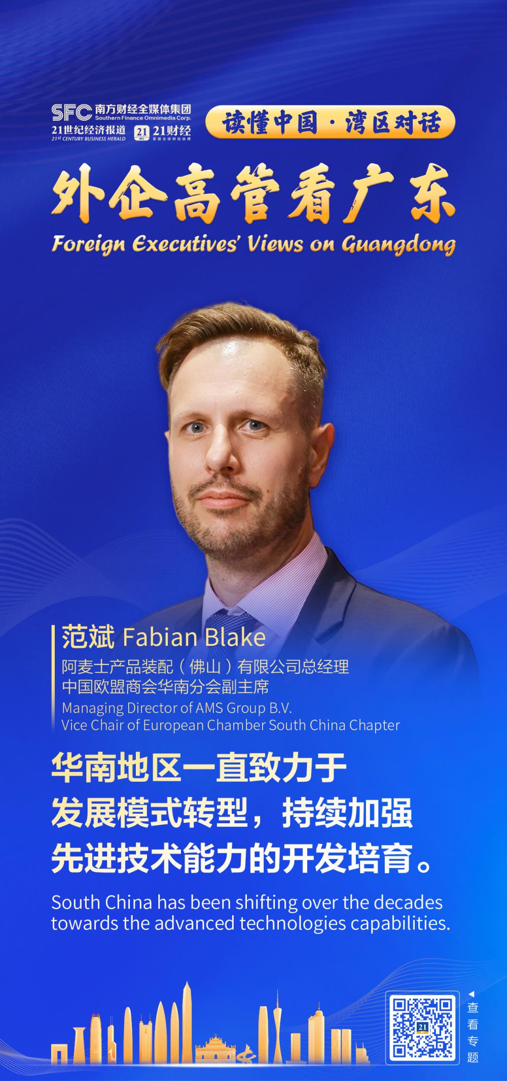 中国欧盟商会华南分会副主席Fabian Blake:华南地区一直致力于培育先进技术能力