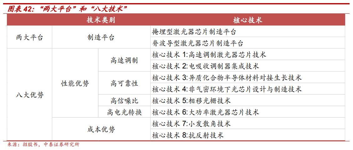 同时,公司还已掌握了包括高速调制激光器芯片技术、异质化合物半导体材料对接生长技术、相移光栅技术、大功率激发器芯片技术等在内的八项关键技术,技术能力处于行业领先地位。