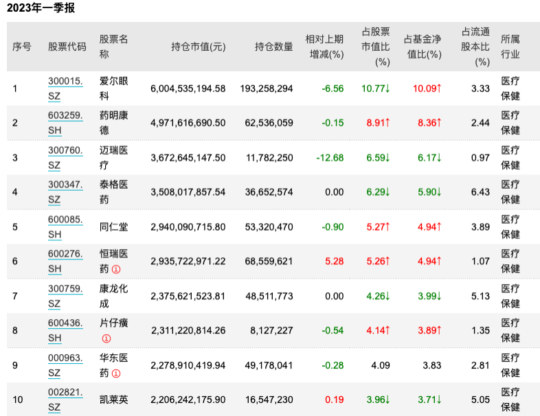 重仓股上。对比去年底,华东医药为新晋十大重仓股。