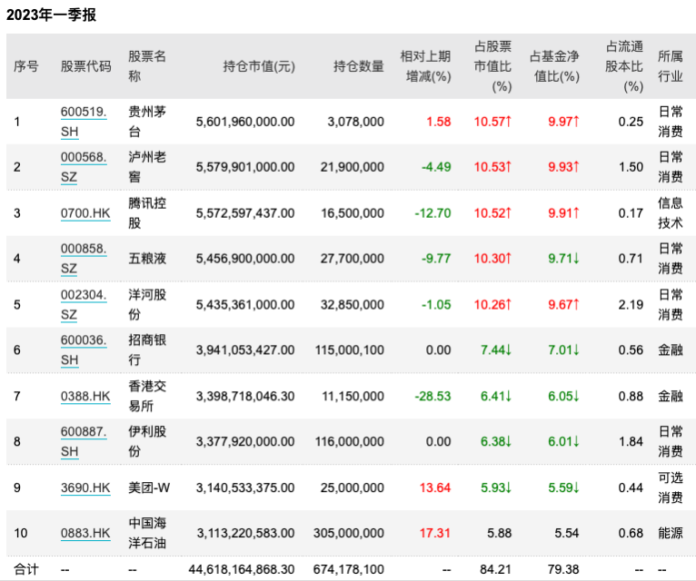 重仓股上。对比去年底,中国海洋石油为新晋十大重仓股。
