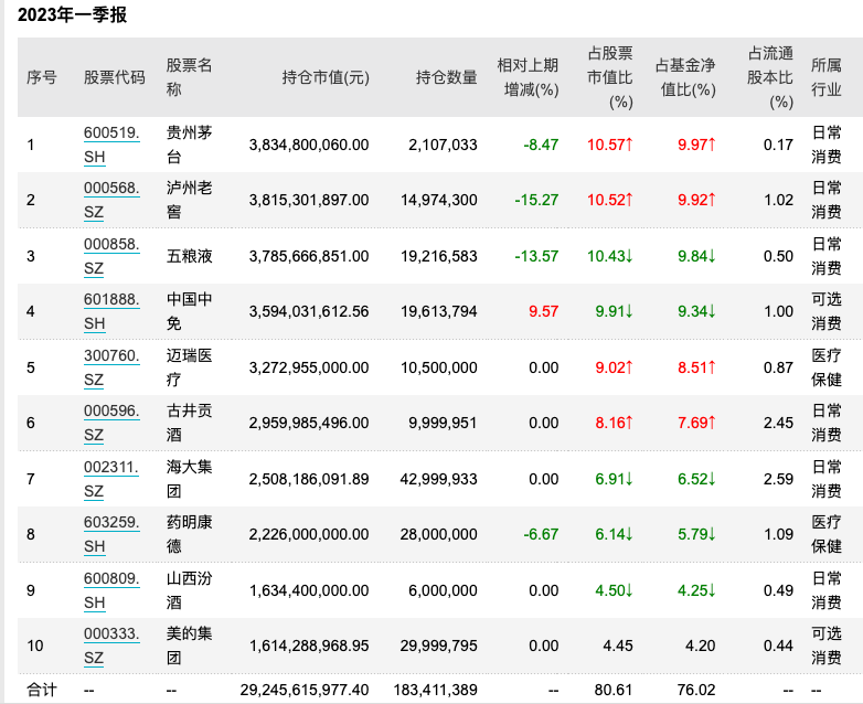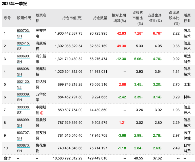 重仓股上。对比去年底,海康威视、澜起科技、中际旭创、晶晨股份为新晋十大重仓股。