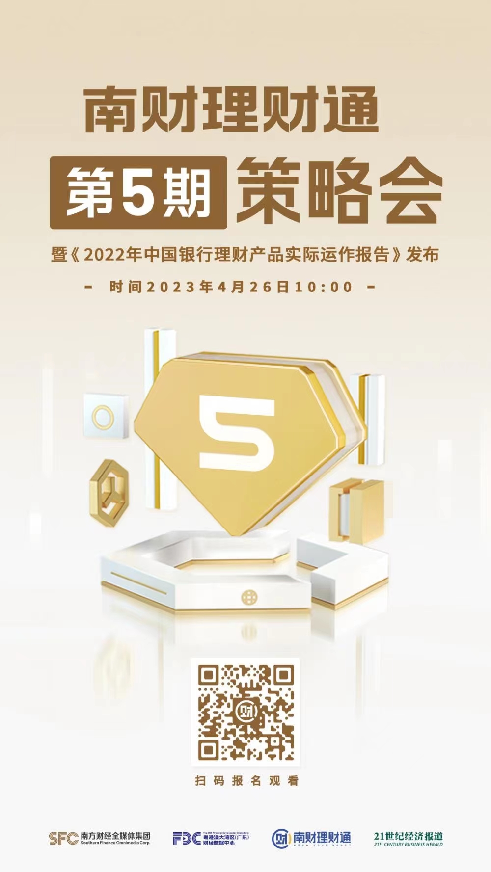 4月26日,南方财经全媒体集团、21世纪经济报道、南财理财通成功举办了第五期策略会。在以“洞悉经济复苏,展望理财机遇”的主题圆桌论坛上,来自国有行理财公司、股份行理财公司、城商行理财公司和基金投顾机构的高管人员出席了会议,回顾了2022年银行理财产品的运作情况,并展望了2023年银行理财在产品发行、投资策略、市场渠道等方面的新趋势和新机遇。