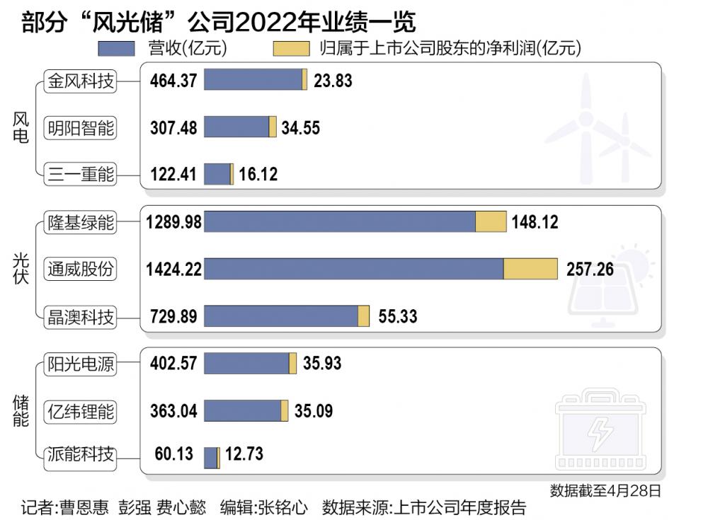 而2023年一季度,“风光储”板块之间的业绩表现有所分化。光伏、储能板块依然维持较快的增速,风电板块却因困囿于风机“价格战”的烦恼,不少头部企业一季度净利润下滑。