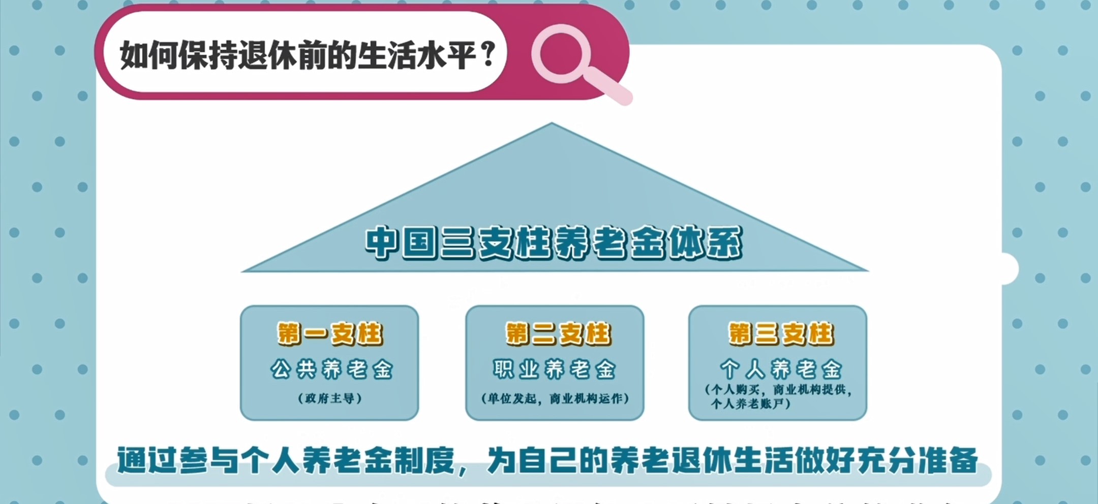 虽然我国已经有覆盖10.3亿人口的基本养老保险来保障大众的基本养老需求。但是,由于基本养老保险的替代率在45%左右。如果大家希望可以在退休后仍旧保持和退休前相当的生活水平,除了第一支柱基本养老,通过参与个人养老金制度,可以更好地为自己的养老退休生活做好充分的准备,从容养老。