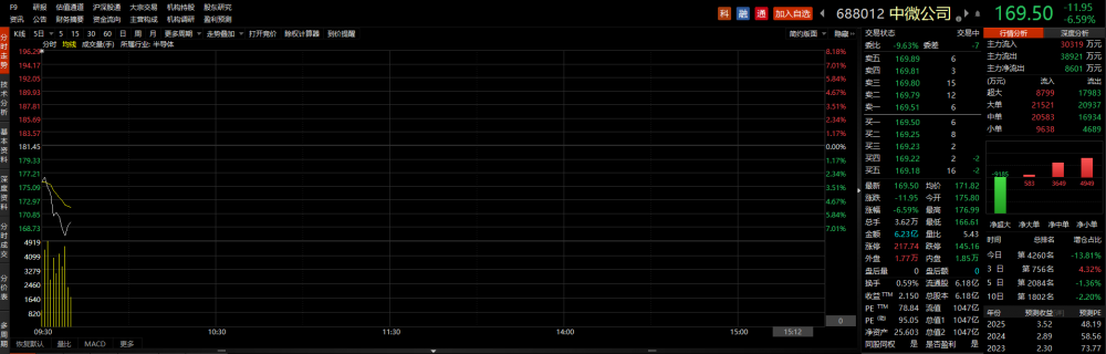 中微公司今日(5月4日)早盘走低,盘中一度跌超8%。消息面上,4月28日晚间,中微公司发布2023年一季报。数据显示,公司今年一季度营业收入12.23亿元,同比增长28.86%;归属于上市公司股东的净利润2.75亿元,同比增长134.98%。