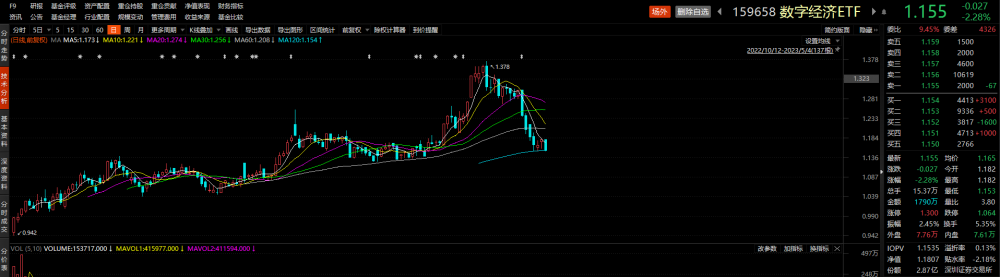多只半导体板块个股也出现明显下跌。受此拖累,重仓多只半导体板块个股的数字经济ETF(159658)早盘走低,跌幅超2%,不过盘中频现溢价交易。交投较为活跃,截至发稿成交额近1800万元,换手率高达5.35%。