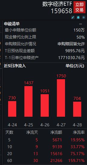此外,数字经济ETF(159658)近期也持续受到资金关注,近10个交易日有9日获得资金净流入,累计净流入金额超9100万元。