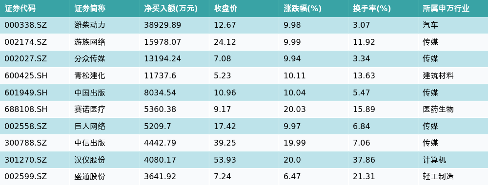 5月4日龙虎榜营业部净买入额前10详情见下表: