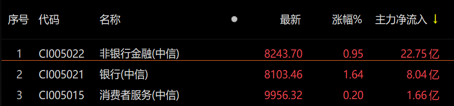 今日(5月5日)A股三大指数盘中集体走弱,板块方面,非银行金融和银行板块涨幅居前,同时获主力资金青睐,截至发稿,主力资金分别净流入非银行金融和银行板块22.75亿元和8.04亿元。