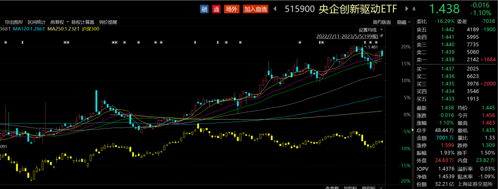 ETF方面,持有招商银行的央企创新驱动ETF(515900)盘中走弱,截至发稿,该ETF跌超1%,成交额突破7000万元,换手率1.50%。盘中出现溢价交易,溢折率0.03%。