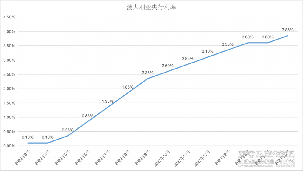 典型的例子便是澳大利亚央行。4月4日,澳大利亚央行宣布暂停加息,将政策利率维持在3.6%,成为银行业危机爆发后首个暂停加息的主要发达国家央行。