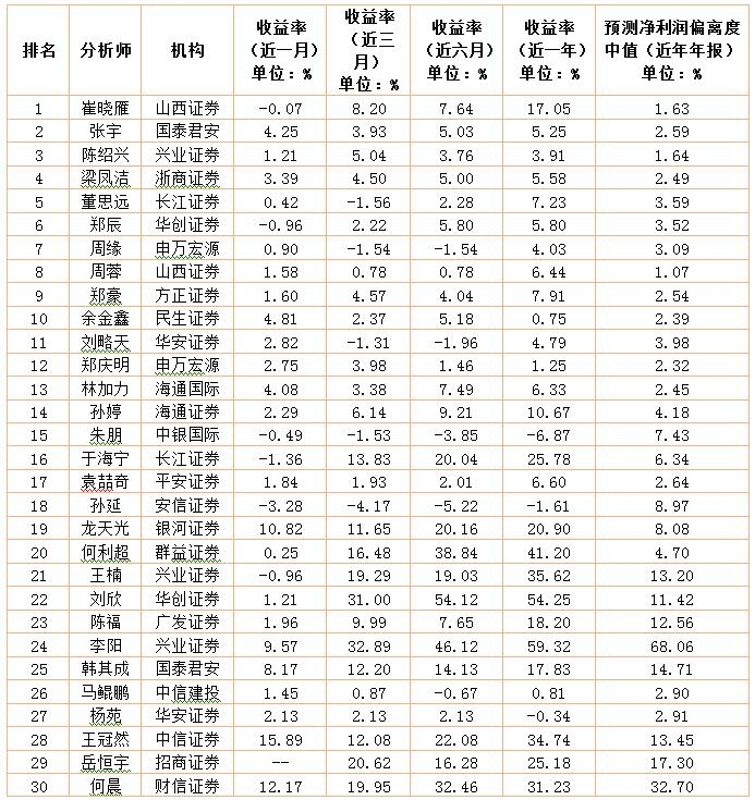 分析师研究实力榜山西证券崔晓雁夺冠 国联证券王卓星排名垫底