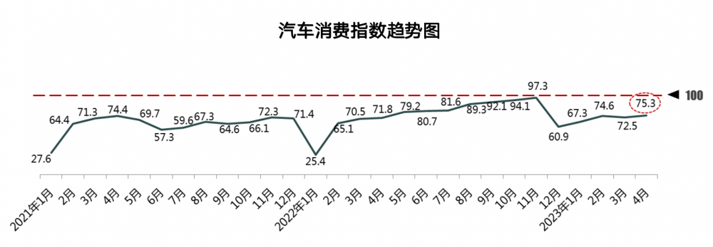 5月4日,中国汽车流通协会发布最新一期“汽车消费指数”显示,2023年4月份汽车消费指数为75.3,高于上月。
