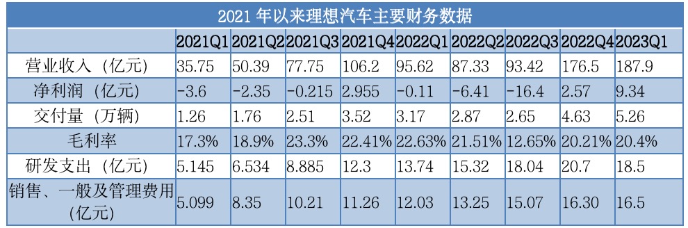 5月10日,理想汽车(LI.NASDAQ/2015.HK)披露了2023年第一季度财报。
