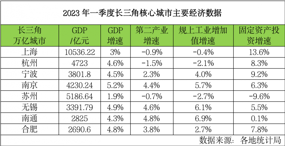 但与此同时也要看到,上海、苏州、杭州等核心城市工业生产持续承压,一季度,上海第二产业增加值2337.10亿元,同比下降0.9%;苏州2287.47亿元,下降0.7%;杭州市1268亿元,下降1.5%。
