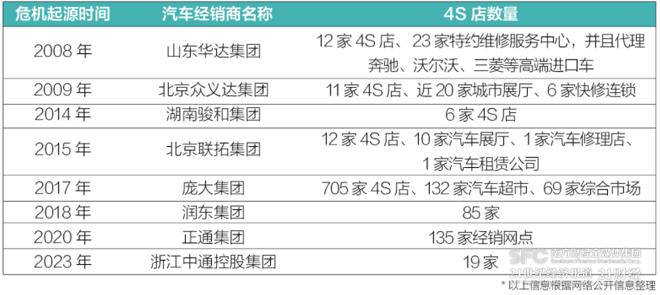 在2008-2009年、2014-2015年以及从2018年延续至今的三轮车市寒冬中,倒闭清算、破产重组的中大型汽车经销商都是因资金链断裂。不过,随着厂商系汽车金融公司发展壮大,相对于各类银行机构具备更加贴近汽车主机厂和经销商真实需求的先天优势,解决经销商资金链安全课题的方式也在变化。其中以2008年山东华达集团和2019年庞大集团破产重组最具代表意义。
