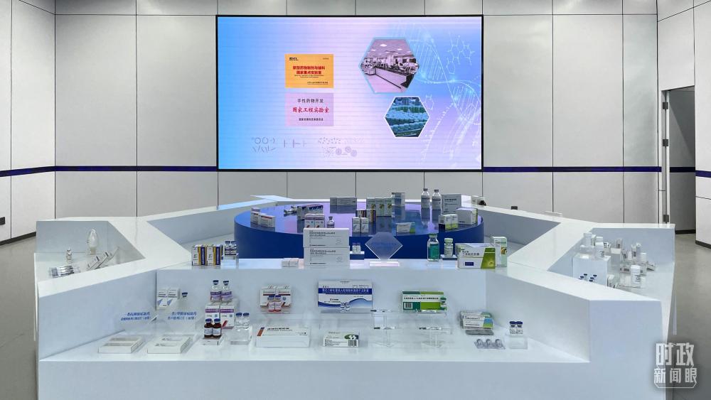 △石家庄国际生物医药园规划展馆内展示企业研发生产的药品。(总台央视记者蒋硕拍摄)