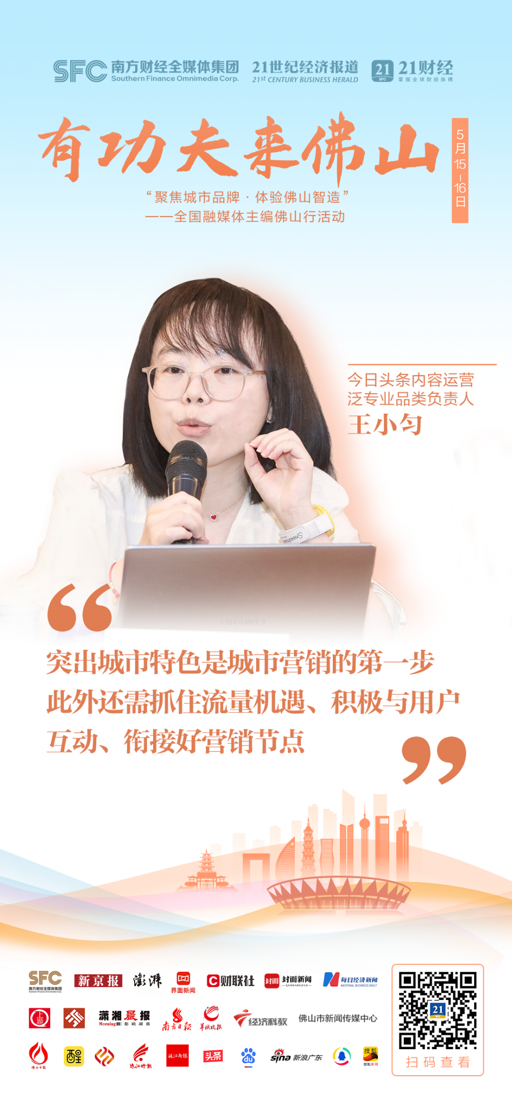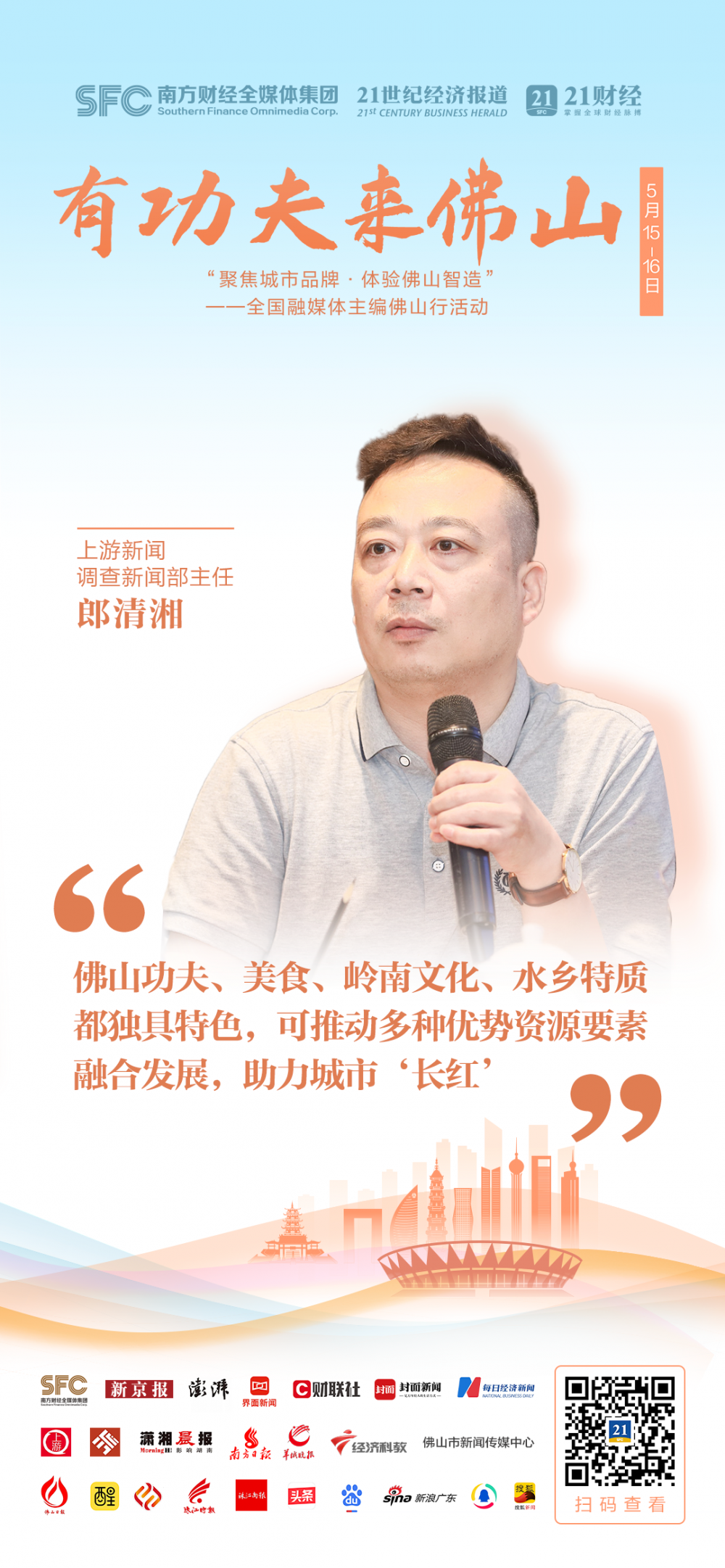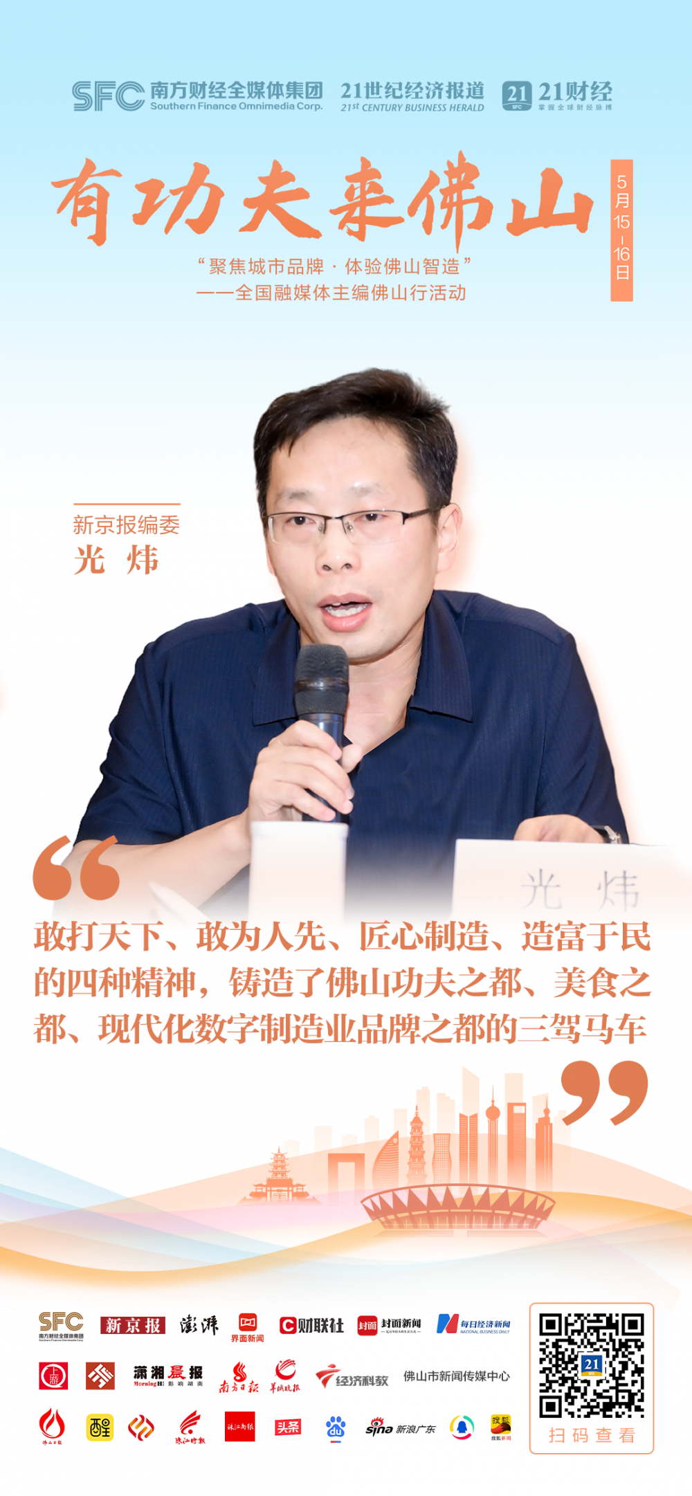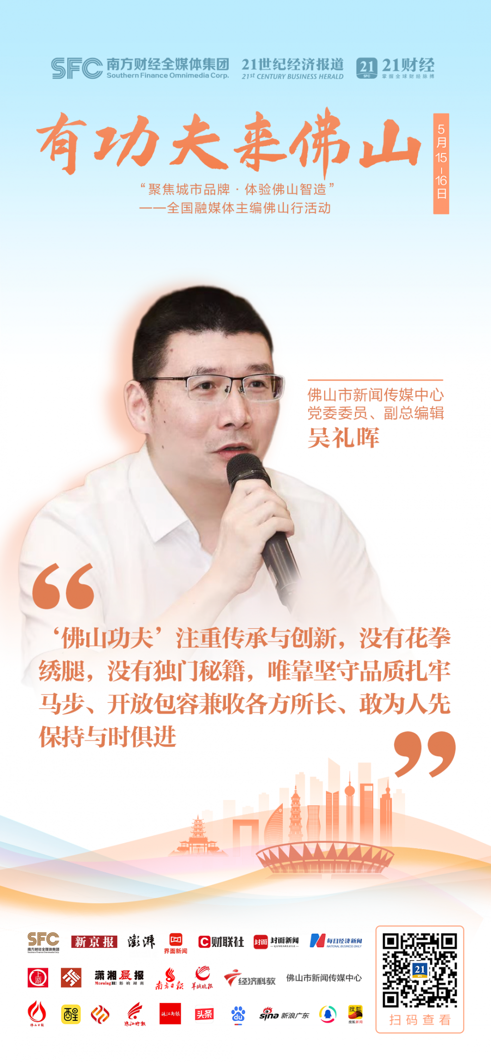 5月15日,佛山市委宣传部、佛山市委网信办主办,南方财经全媒体集团承办的“全国融媒体主编佛山行”活动正式启动,当天举行了“有功夫,来佛山”全国融媒体主编座谈会。围绕“有功夫,来佛山”的主题,来自全国的17家融媒体主编深入剖析城市宣传功夫,为佛山传经送宝、建言献策,传授“独门绝招”,助力佛山打造更多“爆款”。