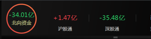 北向资金全天净卖出34亿元,结束连续7日净买入。