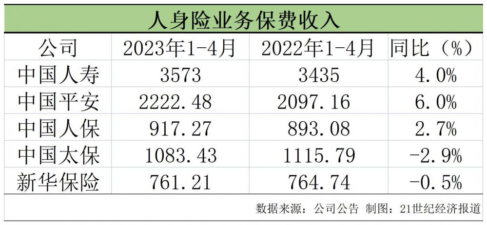 1-4月,五家A股上市险企合计实现人身险业务保费收入8557.3925亿元,较上年同期增长3%。