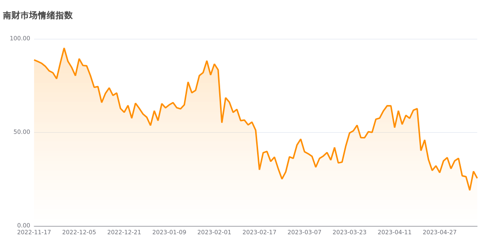 今日南财市场情绪指数为25.5,较前一交易日29.2下跌,市场投资热度降低。