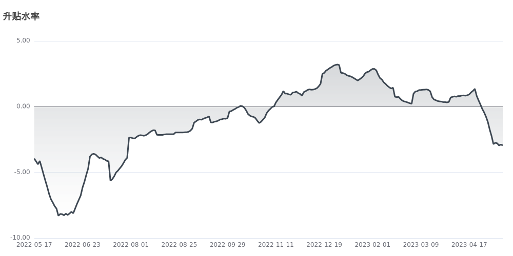 今日该指标值为-2.95%,目前该指标处于近一年较低区间,说明投资者对认为A股市场趋于触底反弹。反映期货市场投资者对市场的看法,该指标越高说明投资者认为当前市场较强,越低则说明认为市场相对较弱,因而与上证指数正相关。