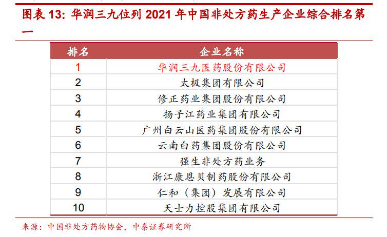 当前,在OTC方面,公司成功打造出了999、天和、易善复和澳诺等一系列知名品牌,拥有较高的品牌辨识度,已连续多年上榜WPP集团(世界最大传播集团)发布的最有价值中国品牌榜榜单,并连续多年在中国非处方药协会发布的OTC生产企业综合榜单中排名第一。