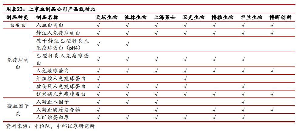 据公告,公司产品线品种全面,规格齐全,主要产品有人血白蛋白、人免疫球蛋白、乙型肝炎人免疫球蛋白、冻干静注乙型肝炎人免疫球蛋白、静注人免疫球蛋白、破伤风人免疫球蛋白、狂犬病人免疫球蛋白等,是国内血制品企业中产品线最丰富的厂商。