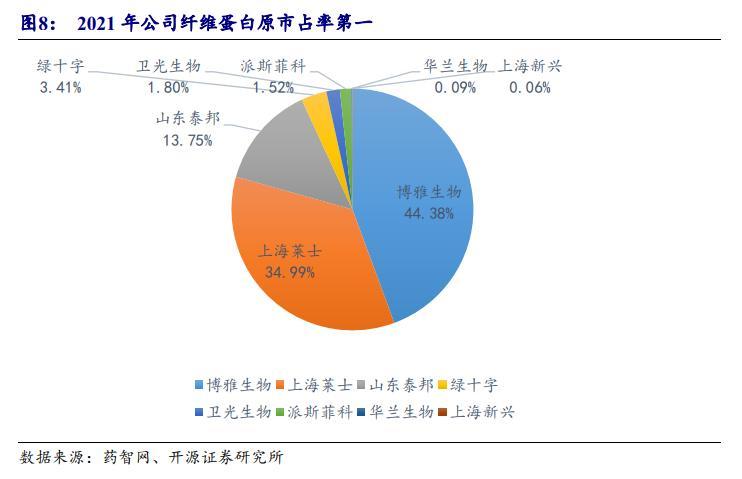 其中在纤维蛋白原领域,凭借领先的收得率,公司已拥有国内自主定价权。而基于优秀的产品质量,据药智网数据,公司核心产品纤维蛋白原2016-2021年的国内市占率一直位列第一,2021年市占率达44.38%,超第二名10%以上。