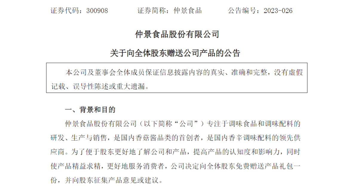 上市公司回馈股东花样多,这次是买股票送“香菇酱”!