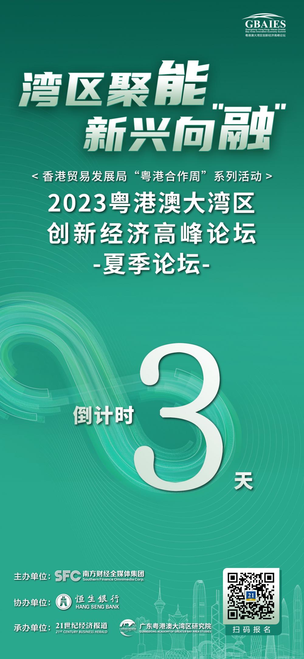 5月25日(本周四),由南方财经全媒体集团主办,21世纪经济报道、广东粤港澳大湾区研究院承办的2023粤港澳大湾区创新经济高峰论坛夏季论坛将于深圳柏悦酒店举行。