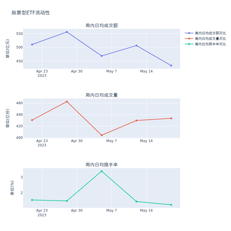 流动性方面,上周股票型ETF市场日均成交额减少14.4%,日均成交量增加0.9%,换手率减少0.21%。