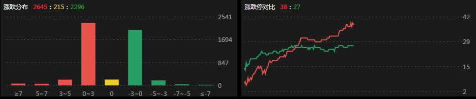 涨跌数对比:2645:215:2296