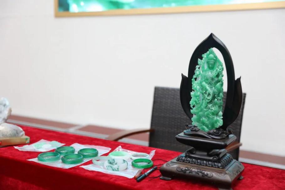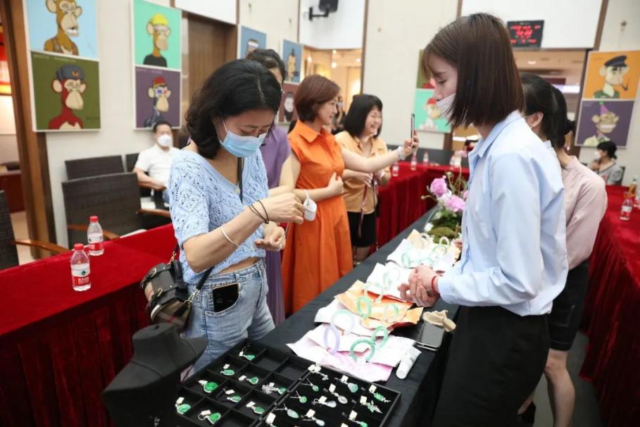 除了展示和鉴赏,本次活动还特别设置了交易环节,玉石交易将现场氛围推至高潮:文物商店展出多件高端翡翠珠宝及摆件,提供翡翠玉石交易服务。我们为翡翠玉石爱好者提供专业的鉴定和评估服务,建设安全、公正、透明的交易平台,确保每一件玉石产品的品质和价值得到保障。在场嘉宾在文物商店挑选自己心仪的玉石产品,各位识货的嘉宾们购买热情高涨,现场成交额破十万,象征吉祥如意、平安顺遂的翡翠产品是在场嘉宾最喜爱的款式之一。