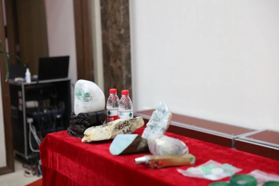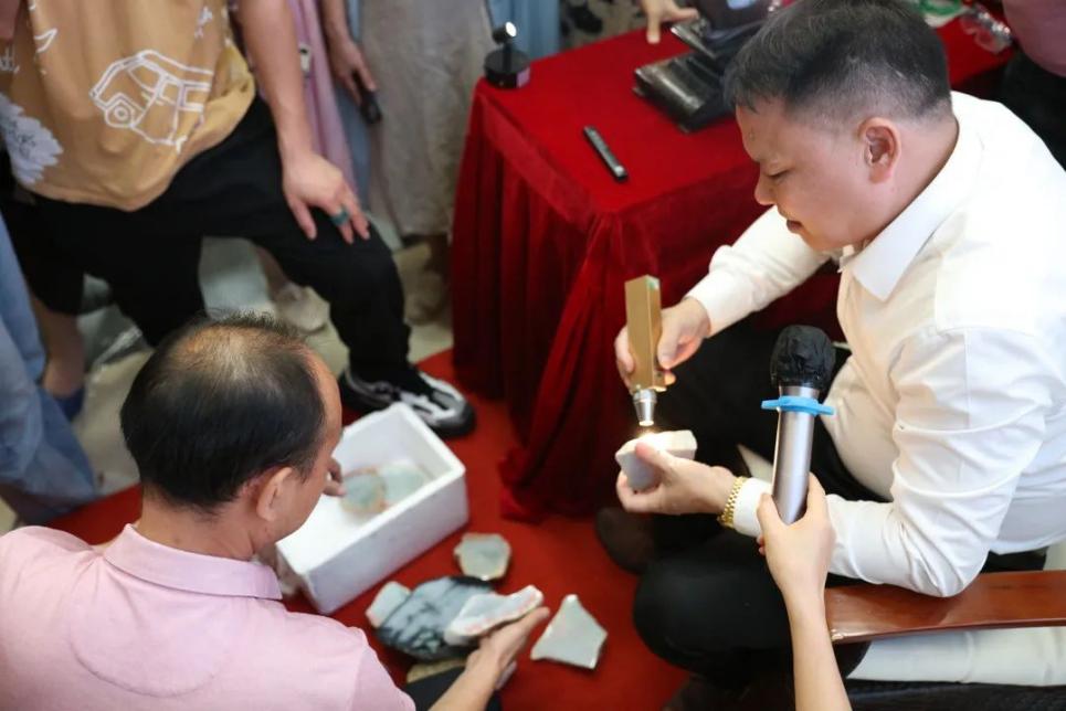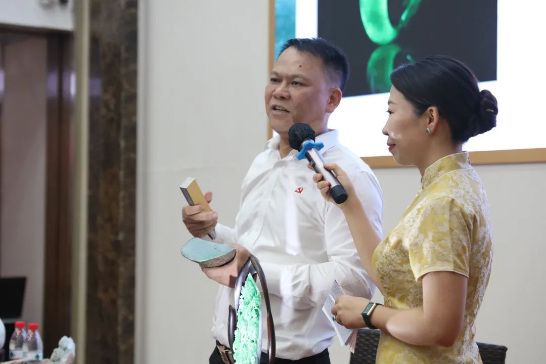 在翡翠原石有奖竞猜环节,嘉宾们踊跃发言猜测,现场气氛热烈。