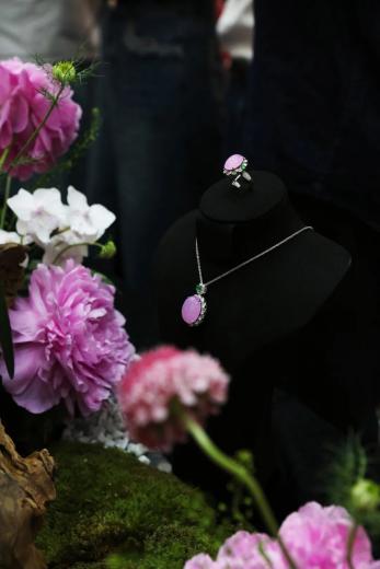下午14:00,嘉宾陆续签到进场。刚入场,嘉宾们就迫不及待观赏叶福欢大师带来的玉雕作品和珠宝首饰。