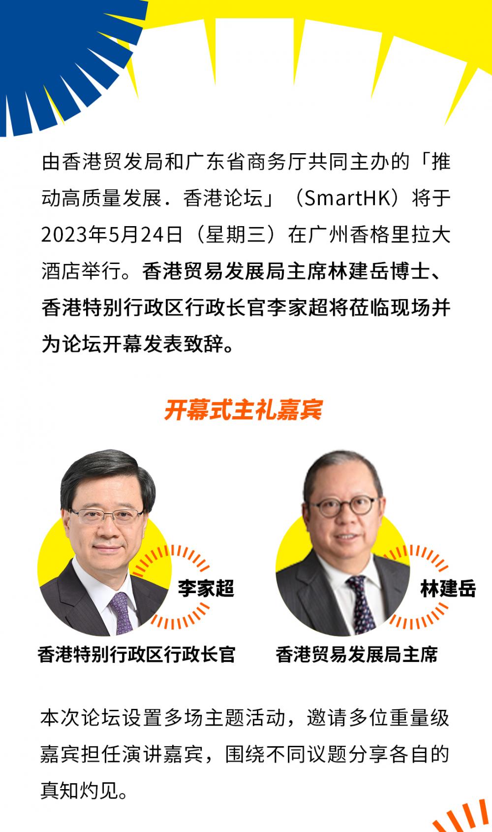 由香港贸易发展局 (下称:香港贸发局)和广东省商务厅合办的SmartHK “推动高质量发展·香港论坛”大型推广活动,将于5月24日在广州香格里拉大酒店举行。