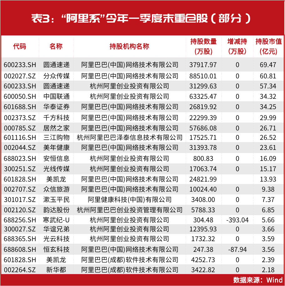 “腾讯系”、“阿里系”一季度重仓股共36只