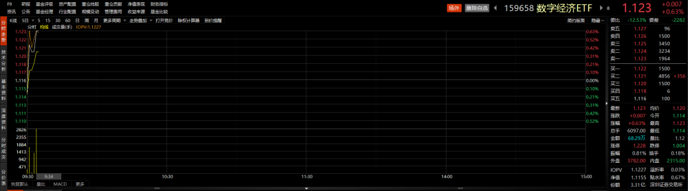 持有景嘉微、澜起科技、兆易创新等多只芯片股的数字经济ETF(159658)早盘上涨,截至发稿,涨幅为0.63%。