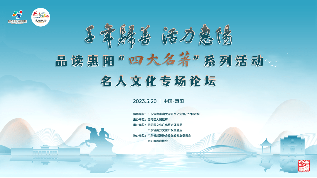 本次论坛由广东省粤港澳大湾区文化创意产业促进会指导,惠阳区人民政府主办,惠阳区文化广电旅游体育局、广东省南方文化产权交易所承办。通过举办品读惠阳“四大名著”系列活动,惠阳希望借助各方力量,打造扎根珠三角、融入粤港澳大湾区东岸的文化旅游度假目的地。