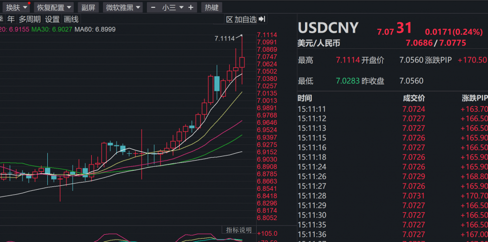 中国外汇投资研究院副院长赵庆明表示,总体来看,虽然暂时破“7”,但不会出现大幅贬值的情况,也不会重新贬回到去年7.30的低点,这个可能性是基本不存在的。