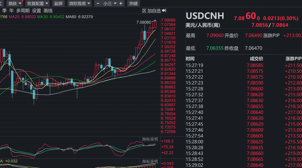 美联储加息“魅影”仍存 离岸人民币跌破7.09
