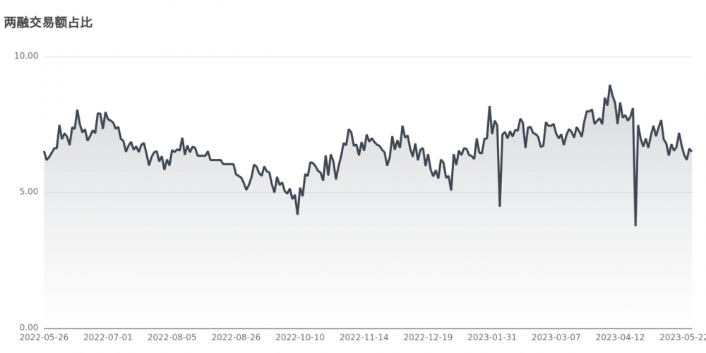 今日该指标值为6.50%,目前该指标处于近一年中立区间,说明投资者对A股持中立情绪。反映场内投资者借钱炒股的杠杆水平,该指标越高说明杠杆水平越高,即投资者认为当前市场较强,反之则说明投资者认为市场相对较弱,因而与上证指数存在较强的正相关性。