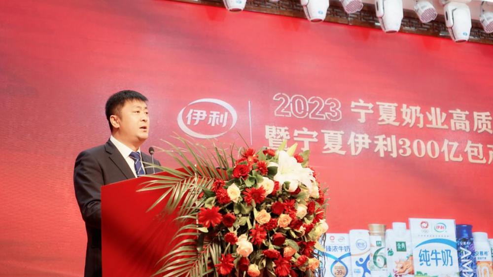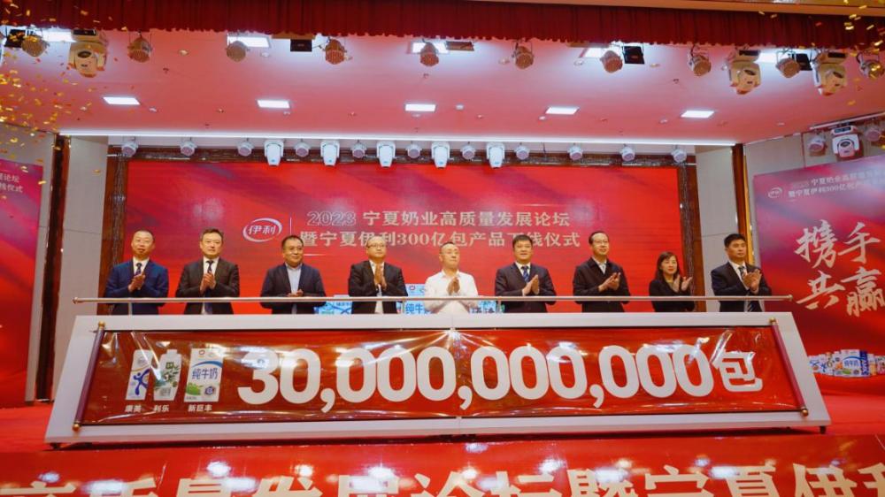 5月26日,2023宁夏奶业高质量发展论坛暨宁夏伊利300亿包产品下线仪式在吴忠市举行。宁夏回族自治区相关领导,内蒙古、辽宁、陕西等省区奶业协会相关负责人,伊利集团执行总裁刘春喜,以及来自宁夏农垦集团、利乐、康美、新巨丰等伊利全球供应商、产业链合作伙伴代表,共同见证宁夏奶业这一里程碑时刻。