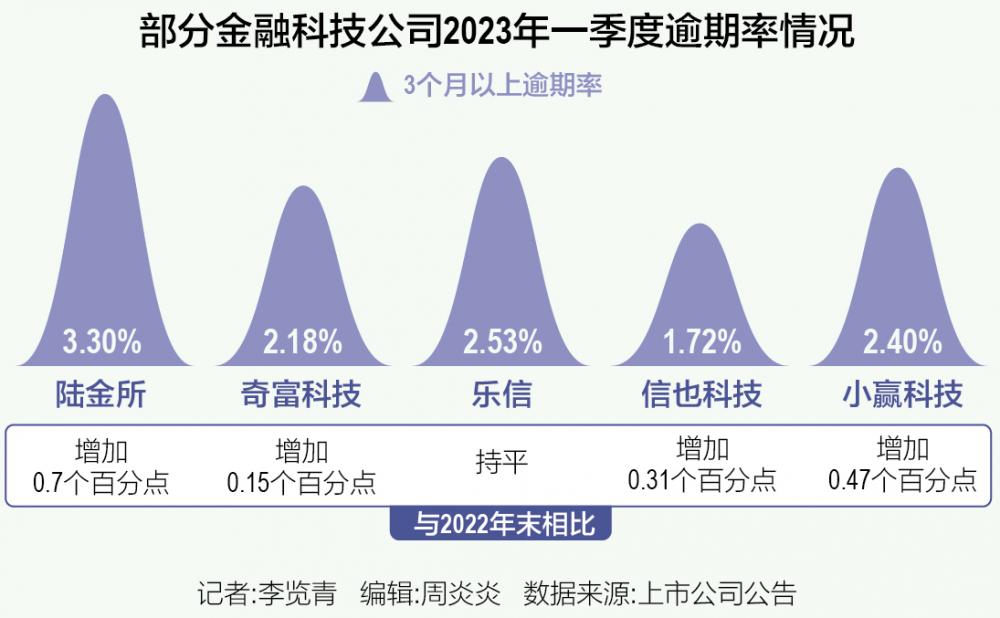 21世纪经济报道记者梳理陆控(NYSE:LU)、奇富科技(NASDAQ:QFIN)、乐信(NASDAQ:LX)、信也科技(NYSE:FINV)、小赢科技(NYSE:XYF)等5家头部金融科技平台一季报发现,随着经济复苏,各大平台信贷投放规模扩大,但受疫情影响,90天以上的“M3+”贷款逾期率相较2022年末有所抬头。
