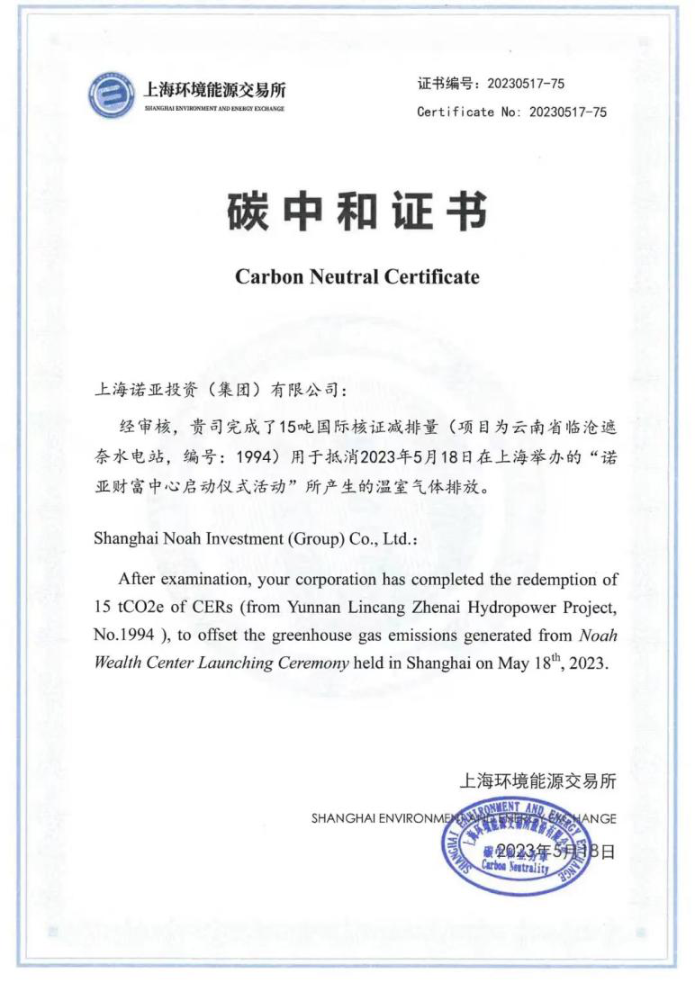 此外,5月19日,诺亚连续9年发布可持续发展报告,披露诺亚每一年在ESG方向的新动态与新成果,期待让更多利益相关方了解诺亚在创造经济价值以外,在环境和社会价值上的努力。日前发布的最新一期诺亚财富可持续发展报告显示,诺亚控股已签署PRI或履行ESG相关原则的管理人机构26家,相关资产管理规模达到243241.3亿元;歌斐资产已签署或履行ESG相关管理原则的管理人机构16家,相关资产管理规模也达到50587.67亿元。与此同时,诺亚于5月18日举办的诺亚财富中心启动仪式获得由妙盈科技出具、上海环境能源交易所审核认可的《碳中和证书》。